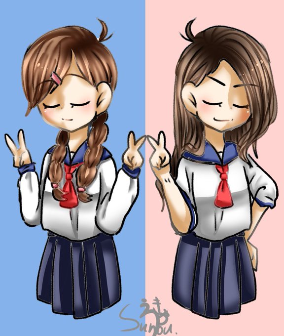 女体化です! 高校生のトド子とカラ子を描いてみました! ちょっと不良感が…かっこいいのを!かっこいいのを描いたつもりなんたけど… #トド子 #トド松 #カラ子 #カラ松 #セーラー服 #女体化