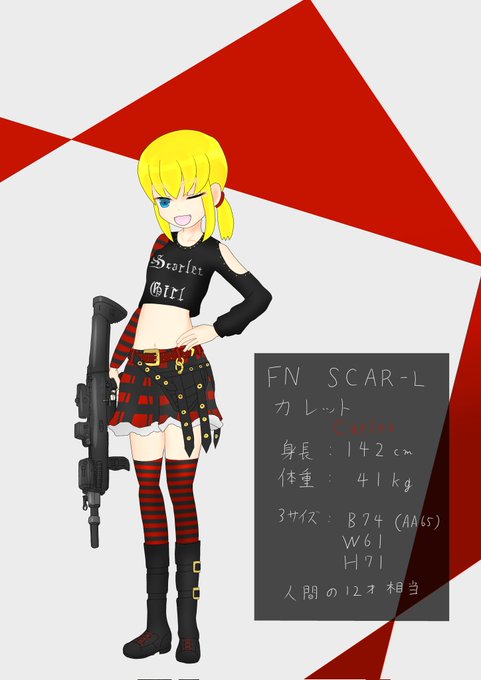 アメリカ製の銃「XCR」という銃が本体で、趣味は「おいしいものをたくさん食べること」なおっとりした性格の女の子です!