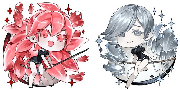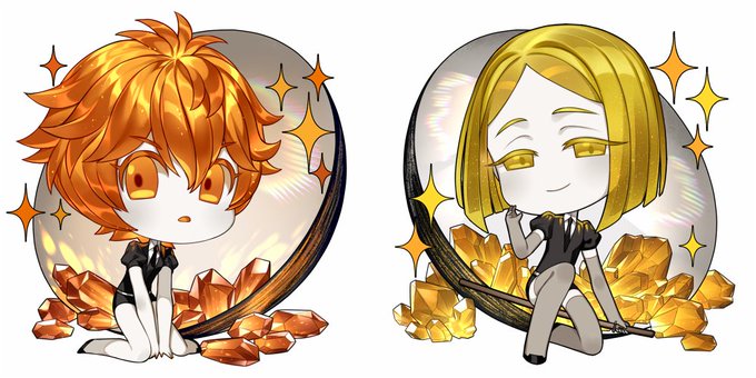 I just finished drawing #Zircon for the new #housekinokuni keychains set and I can't help myself putting them together with #Yellowdiamond 🧡💛