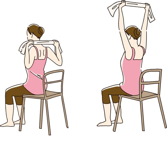 画像のようにタオルを両手に持ち頭の後ろで上げ下ろしするだけ!