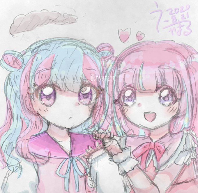 ☁️花園きらら×🎀アンちゃん 宿題やりたくなさすぎたので、勝手にアイディア(?)お借りして描きました… お洋服も若干似てる…かわいいね…(絶賛現実逃避中) https://t.co/FbSG3pdbvq