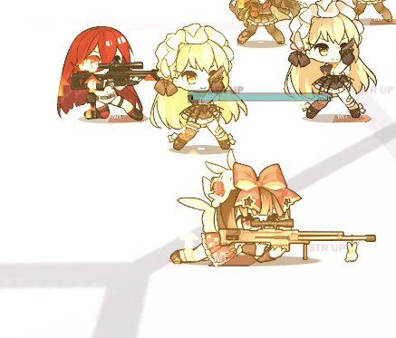 スナイパーと言えば手前にいるM99ちゃんの持ち方だと思ってたんだがT-5000ちゃんは片膝付いてるだけなの不思議 大きさとか重さのせいなの?