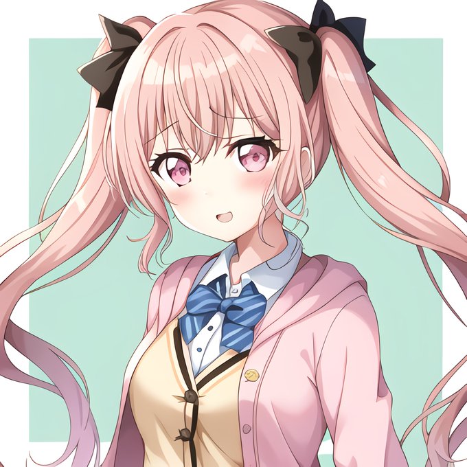 {{{blunt bangs}}}, forehead, hairline, fang, halo, {{parted bangs}}, two side up, holding cat, sakura miko, iroha (blue archive)