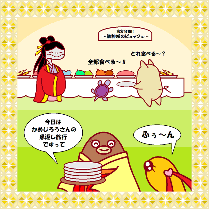 ここは、とある川の底にある龍宮神社の境内のはずれ。遊びたい盛りの亀姫様は、毎日同じことを繰り返す巫女の仕事にあきあきしています。