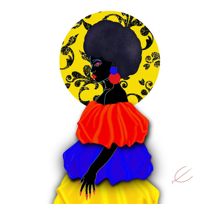 #portfolioday I do digital art on the moment. I draw with my phone and I like to draw black women. I like bright and saturated colours a lot but I’m learning to work with less saturated colours