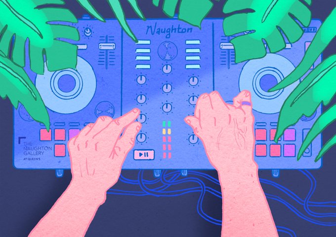 Our friends at the @NaughtonGallery have moved their Artspeak & Artsounds programmes online! Great to see these postcard illustrations they commissioned by Thomas Bannon still being put to good use. ✨📚🎛✨ #illustration #illustrator #illustrationagency #gallery #exhibtion