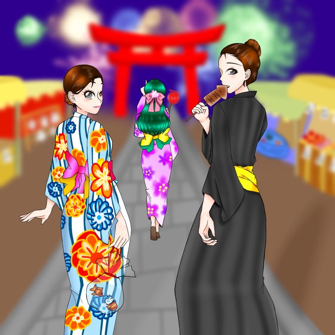 #龍神町_夏祭り 龍神町(@Ryuujinntyou_ID)の夏祭りイラスト! そろそろ夏も終わるけど!!! こんな夏にしたかったね!