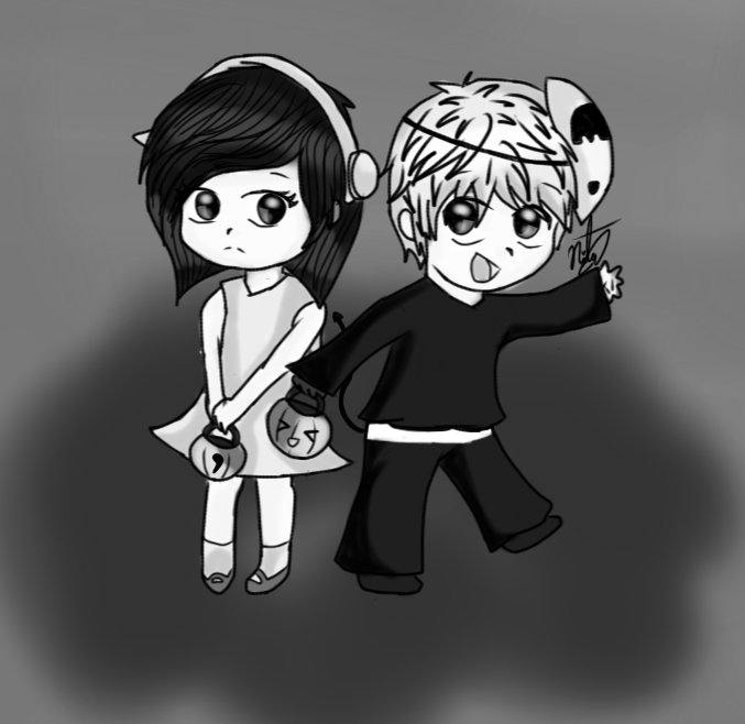 Hace poco vi un vídeo llamado "Missing Halloween" y pues me inspire en dibujar a los personajes :'3
