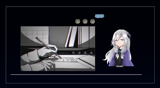 「侵浸食卓」 KP/作者様 御碕守様 PL/PC うさだ(夜部 カガリ) SAN90あったのにあれ~!?? 色々ありましたが、無事生還しました!! しかもイラストまで用意していただいて…… とても楽しかったです! 感激しかなかった カガリを動かすことはもうないかもしれないので、 連れてきてよかったです