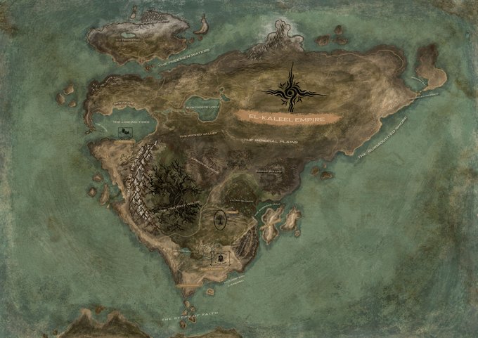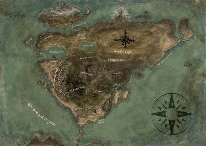 Map progress update - have a good chunk of the map done now, still need to add a lot of details like location names and city sigils but its really starting to come together.