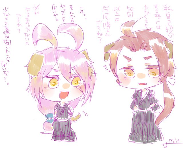 十二大戦の舞台のチケット当たってたからヤッターーー!!!の勢いでの落書き。寝住くんと砂粒さんでわーい\( 'ω')/