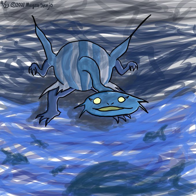 130日目 今朝の練習を踏まえたつもりでしたが、いつものスタイルに。 #イラスト #海 #モンスター