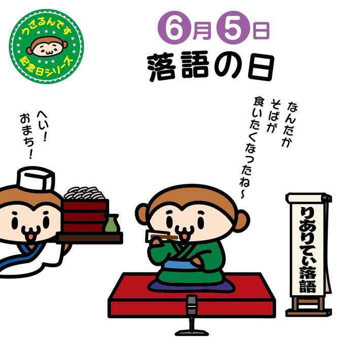 ♪( ´▽`)6月5日は落語の日。六(ろく)五(ご)で「らくご」の語呂合せ。お噺のプロ落語家さんは、扇子を使って上手におそばをすすったりしますよね!でも、うざるんはまだまだなので、出前を…?