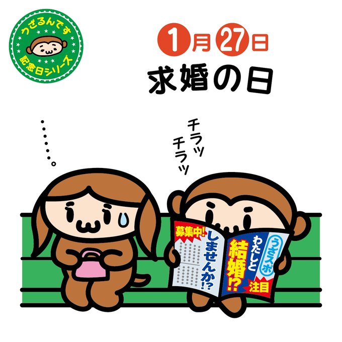 ♪( ´▽`)1月27日は求婚の日。1833年のこの日、伊勢新聞と三重日報に、新聞紙上初めての求婚広告が掲載された日なんです。多くの人に見てもらうためですが、なんだか恥ずかしい?ですよね〜