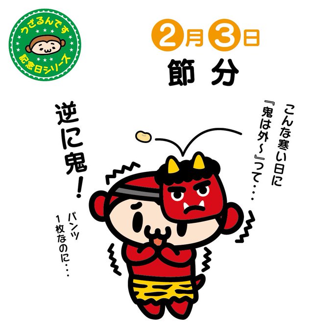 ♪( ´▽`)2月3日は節分。豆まきしてますか?この季節は鬼でも外は寒いですよね!パンツ1枚なのに!鬼は外だなんて!逆に鬼!鬼役の人は風邪をひかないようにしてくださいね〜
