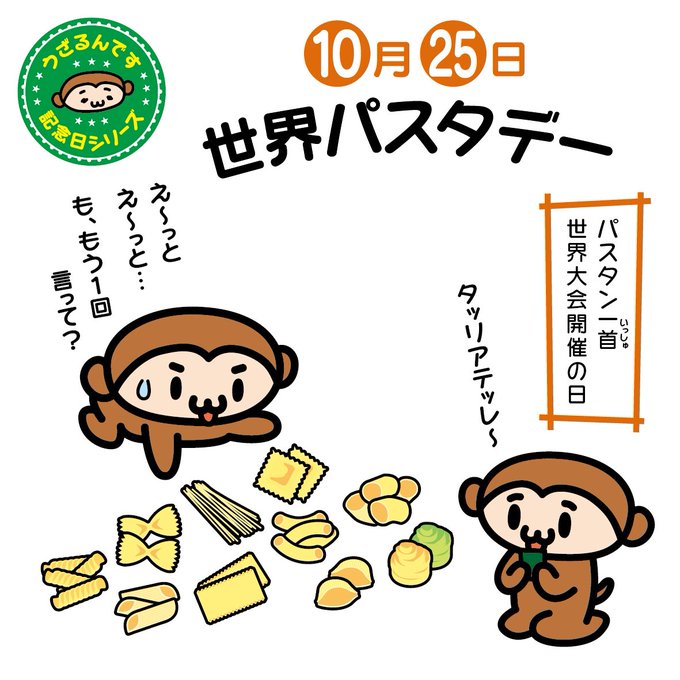 ♪( ´▽`)10月25日は世界パスタデー。パスタの種類ってたくさんありますよね〜。いろんなおもしろい形があって、さらに難しいイタリア語だと覚えるのがたいへんですよね!