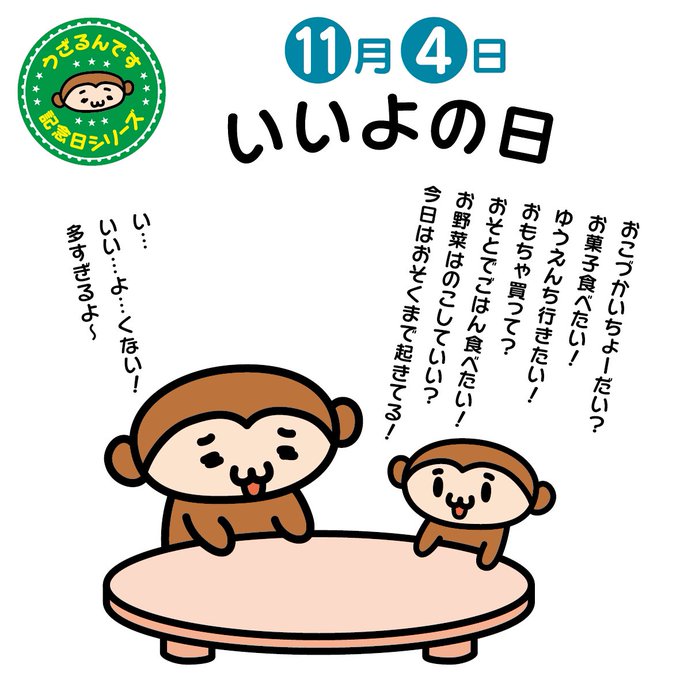 ♪( ´▽`)11月4日はいいよの日。いいよ。とほめたり、いいよ。と認めたり、いいよ。と受けとめてあげたりすることを推奨する日です。この機会にお願い事や告白をすると、いいお返事がもらえるかも?