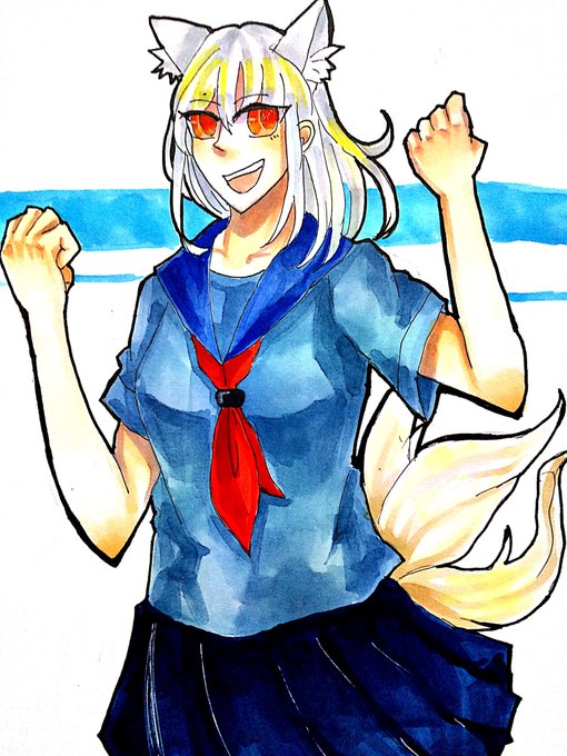 北丘モトミさん宅 @UnderCaulfield の子を描かせていただきました!! ハイライトの色が濃すぎましたごめんなさい!!!!m(。≧Д≦。)m ケモ耳がかわいいです...!!! 描かせていただきありがとうございました!!!