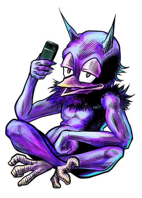 新しいBAKEMONO。『つぶや鬼』年齢:228歳、性別:男、種族:鬼と鳥のハーフ、人間界でスマホを手に入れ呟く事が多くなる。たまにBAKEMONO Twitterでも呟く。 https://t.co/IkFgvfvF9j