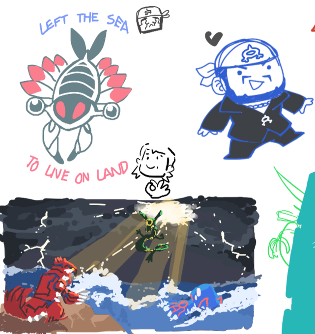I drew some Hoenn peeps and a whole Emerald tribute scene in a group drawing chat... (the chibi archie, Anorith, and that whole scene specifically)