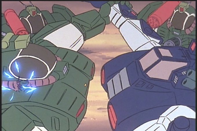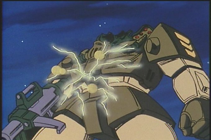 This episode is also the few(only?) times the Dougram's backpack is used as a mounted cannon on the trailer. Heckle even uses one of Crinn's spare headbands to fire the linear cannon lol