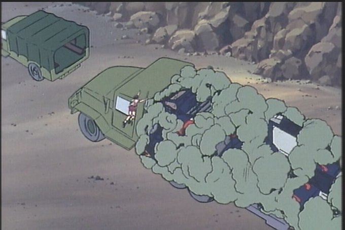 Here's a weird looking truck they put the Dougram on before it got its iconic trailer.
