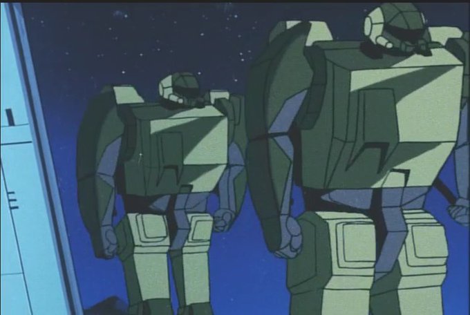 I guess this is a mass-production type Command Base. Here's some more serious soldier guys deferring to the anime hero!