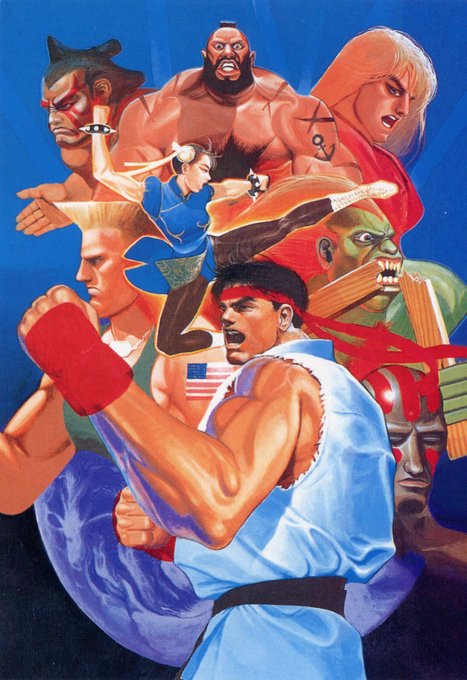 Regarding the SFII flyer illustration, Akiman painted it at his parents' home on New Year's Day. At the time, he was working at Capcom as a graphic designer and was afraid that it would be frowned upon to do this illustration in the company's offices.