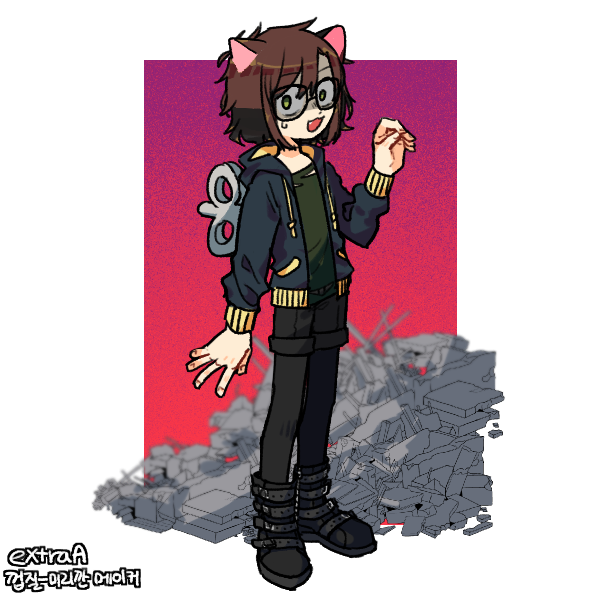 [original] icarus + a decade old character I found while sifting through my flipnote files, his name is Fox and his only character trait is that he dies
