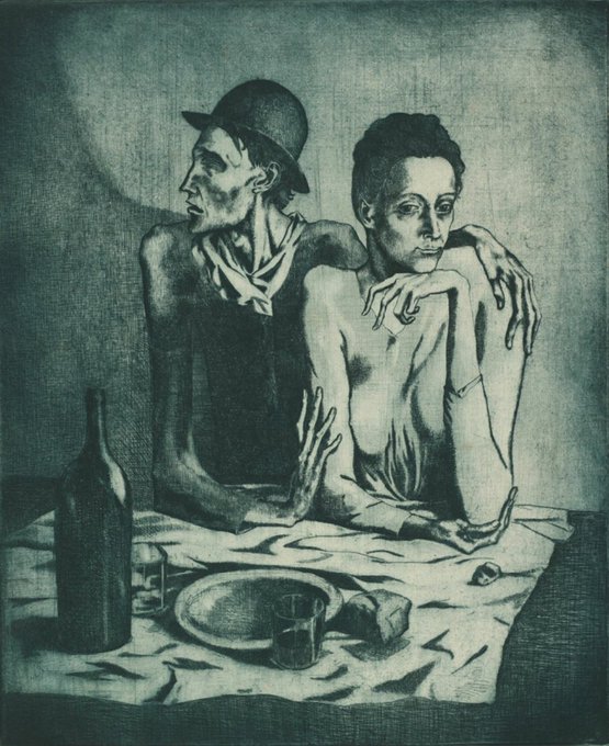 Pablo Picasso, THE FRUGAL REPAST (LE REPAS FRUGAL) from the Saltimbanques series, 1904, etching, published 1913 - Art Institute of Chicago