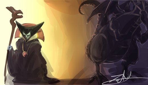 今日の昼間突然の第3回悪役わんどろ告知だったから行き渡ってなかったかな~。とりあえず主催も描きました、ガノンおじさんの愉快な部下、ザントちゃんとギラヒムのわるいわるい笑顔 #悪役版ゼル伝深夜のお絵かき60分一本勝負