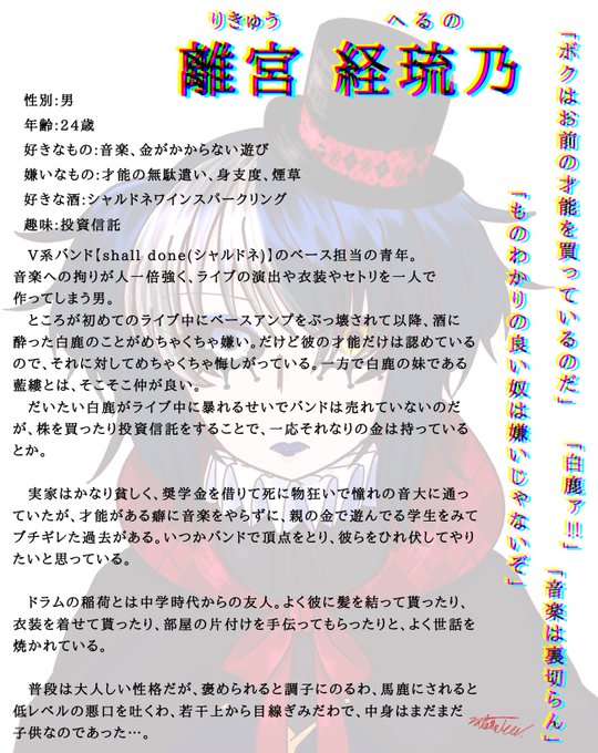 急に思い立ったキャラメイクがお気に入りだったので、CSつけて置いておくことにした。中身が幼いバンドマンです。