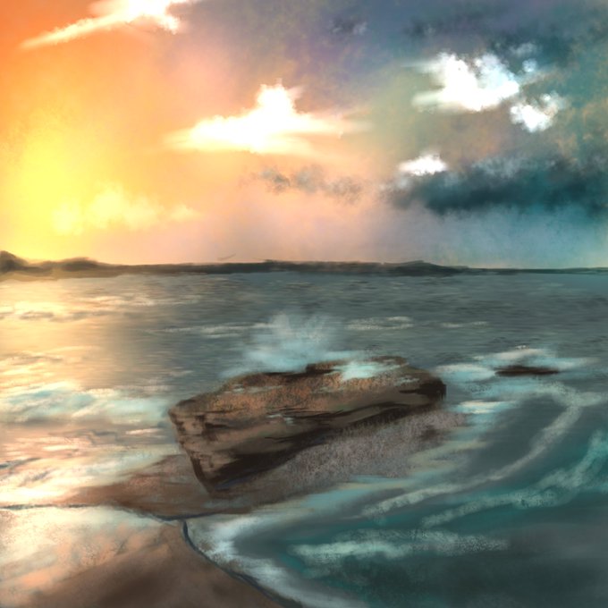 A #landscape painted #Procreate this #digitalart was just a quick one. Have a goodnight everyone! #ocean #sunset #art #painting #waves #procreateart