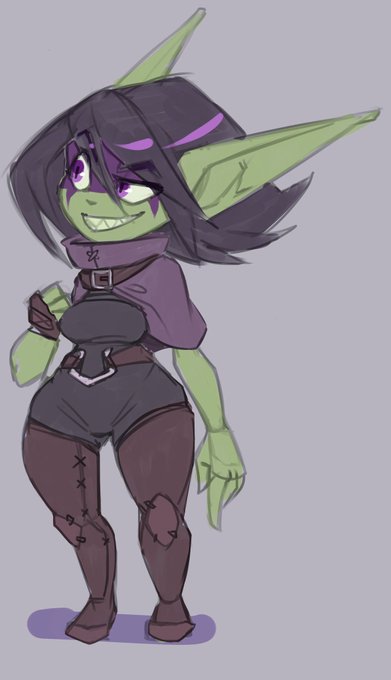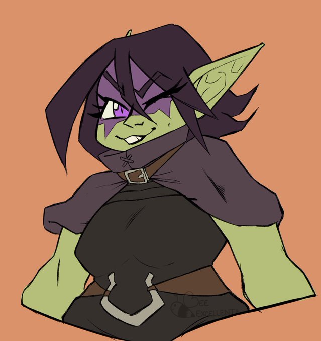 @bee_excellent @Gobb_u My favorite OC is my Goblin Naila. She is a bounty hunter/adventurer. I play her in dnd as a horizon walker ranger. Cocky & opportunistic. Loves to live free and has a soft heart for her surrogate brother, a young kenku kid.