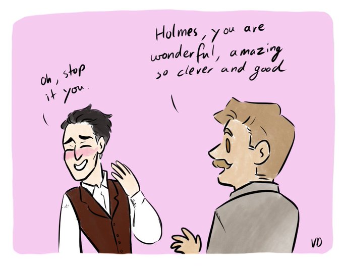 Holmes getting all flustered and pleased when he gets praised never fails to be endearing. Based on my favourite cat meme