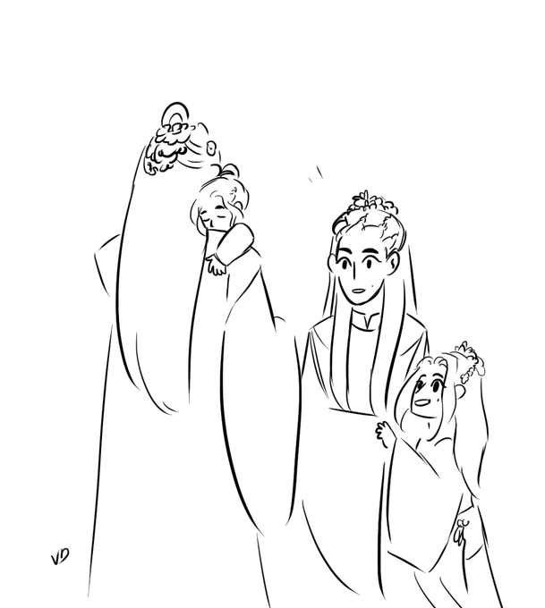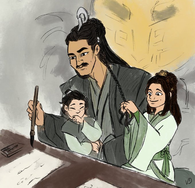Nie Mingjue deserved to be a dad honestly. I saw someone mentioning him going about important sect business while his kids are sitting on him or braiding his hair ;3; and I had to draw it