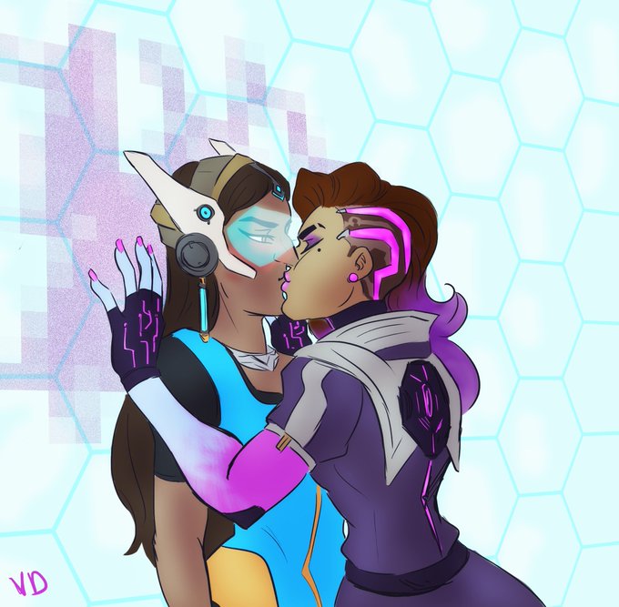Never drawn Symmetra/Sombra before, but here we are! Against the wall kiss, absolutely unprofessional!