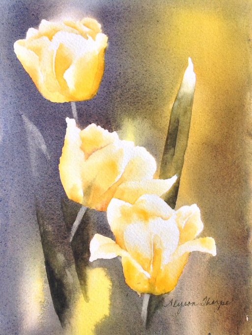 "Tulip from George" by Alyson Thorpe, #watercolor 11x14 matted & framed $120 #wintersalon2016 #artshow #vanartguild https://t.co/5ObbmCVImN