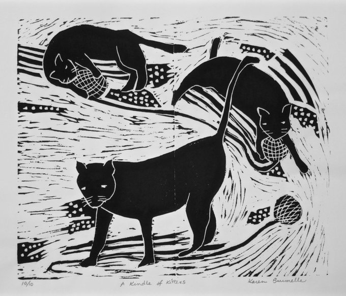 Two of Karen Brumelle's block #prints (framed) now available from North Vancouver Community Arts Council @NVArtsCouncil Art Rental.