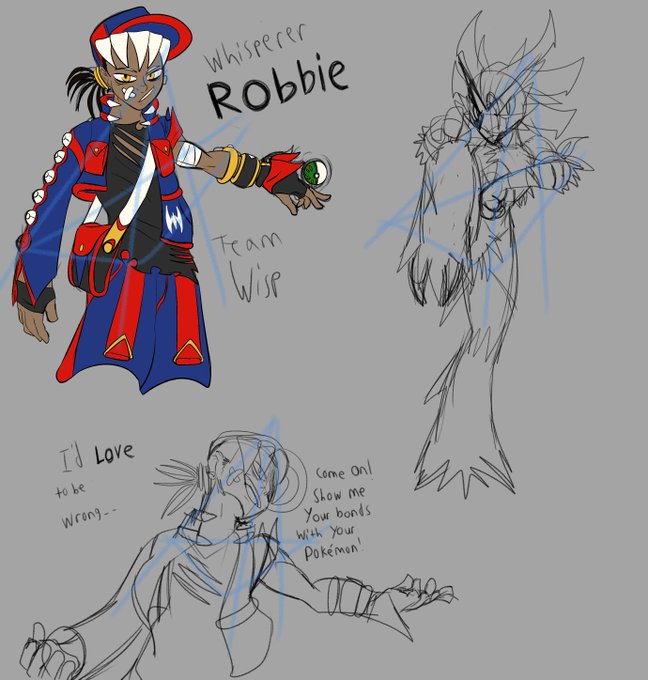 I copied my friend and made a #pokemon #oc, and went a bit overboard, he's a team captain that used to be a #pokemonranger but met so many abusive trainers he decided steal and train their #pokemon. team wisp from "animal whisperer" ,also stealthy as a breeze I guess? #pokemonart