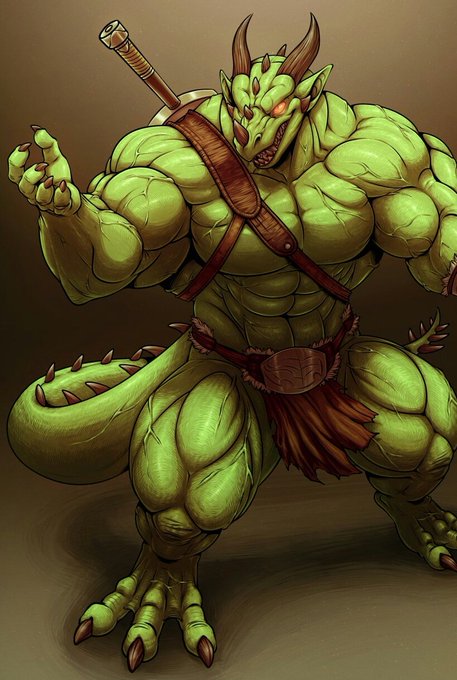#4444skin day. Varanis doesn't have it, but Sin sure does, and he comes in sizes too~ (🎨 @RickGreenpont @Dan_and_Nite Nazuu-M0nster and Regnar of FA) #Muscle #furryart #nsfw