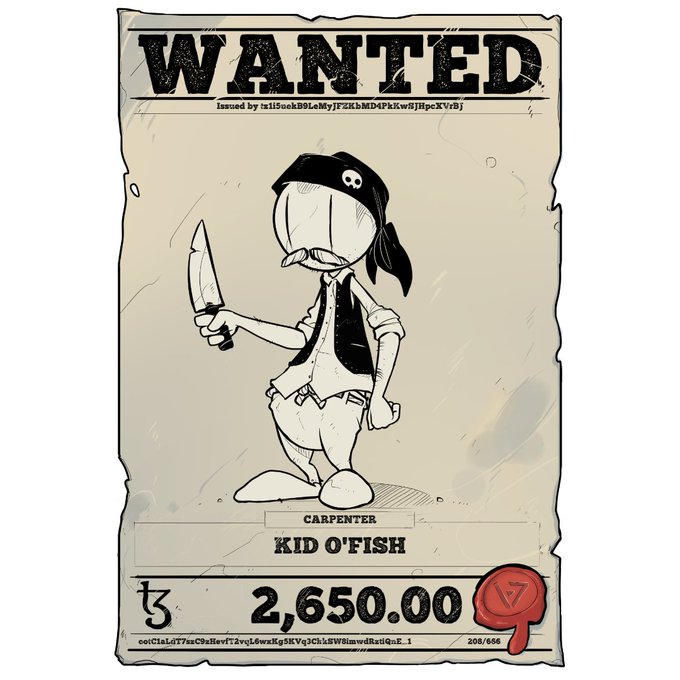 > Gets Kid o'FISH as a name from #tezospirates from @Flygohr