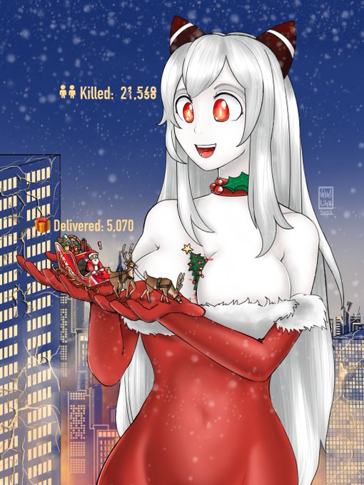 [YCH Commission] Merry Christmas everyone!🎄 If your presents are a little late, it might be because Santa is preoccupied with some giant ladies~ #giantess #sizetwitter