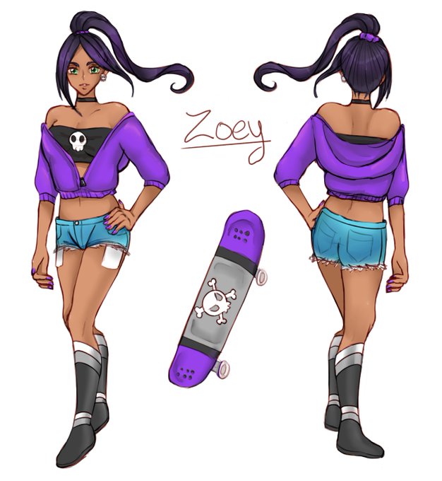 💀The skateboarding Giantess too cool for school: Zoey! 💀 Another reference sheet commissioned for my bestie! Zoey is one of my favorite characters to draw, and I love playing around with different outfits for her. #sizetwitter