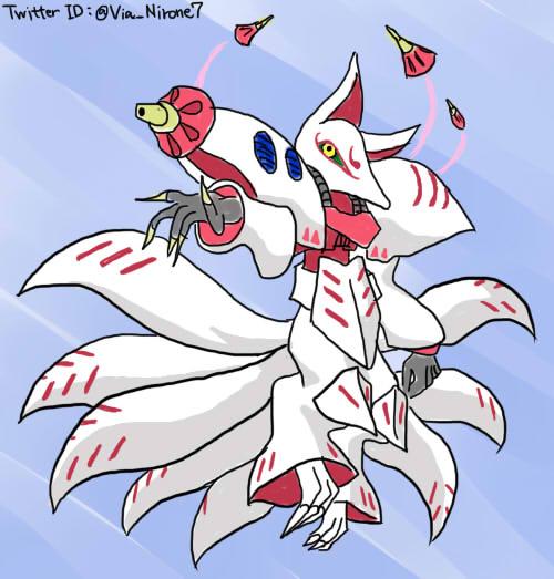 こんなの絶対他の誰かがすでにやってるネタだよなー、と思ってたが、試しに「キュウビ キュベレイ」で検索しても一向にやってる人が見つからなかったので描いてみた。