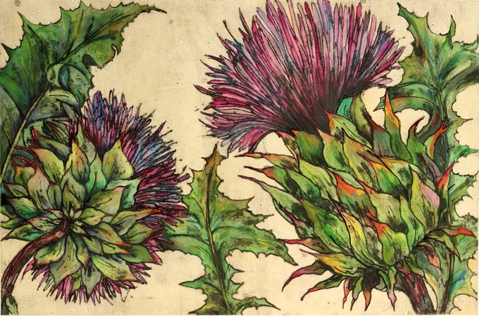 Vicky Oldfield - Cardoon https://t.co/Tc5meq2FBF #printmaking #thistle pictures #Cardoon