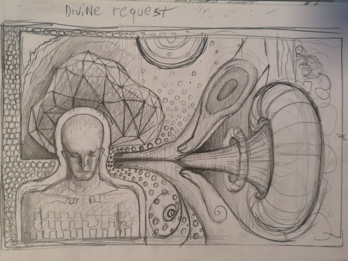 This is not a "sketch vs final" post, it's an "I've minted my first fully digital creation" post. If you wish to collect this historic piece take a look at the link below. "Divine Request: is now vailable on @withFND. any share will be aprec, thank you!