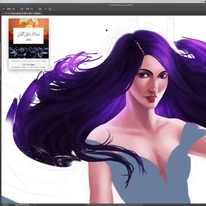 #wip #digitalart #digitalpainting #digitaldrawing #art #artist #artwork #creative #inspiration #photoshop #wacom #painting #drawing #process #video #speedpaint #hair