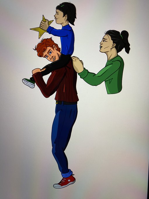 Detail check: group photo Roy, Lian, and Jade vs. individually drawn Roy, Lian, and Jade. Not nearly as much difference here, but I did try to rid Roy of his scoliosis. 😅💀
