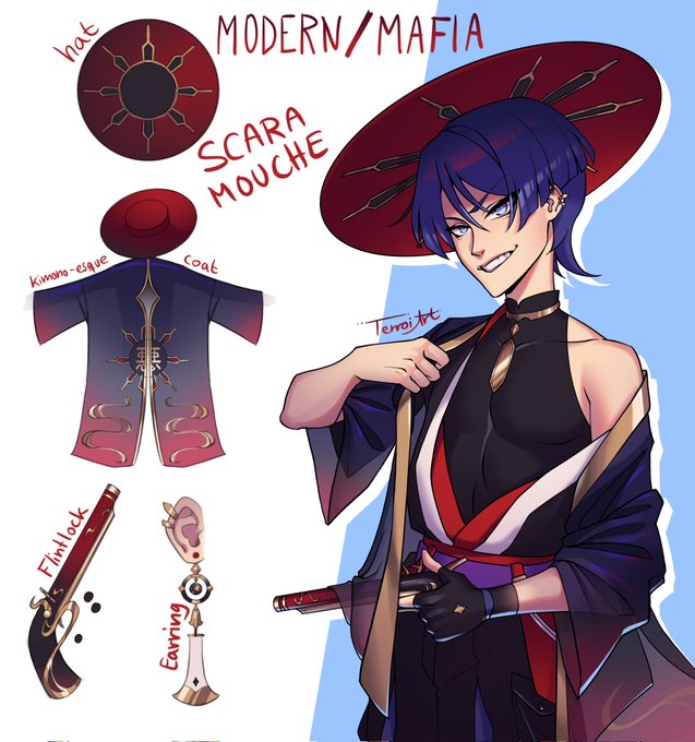 Modern Scaramouche bc I had the urge to give him this hat and a flintlock which made it kinda mafia as well :')
